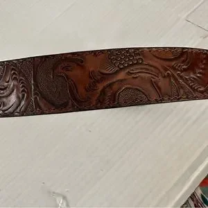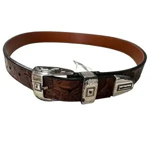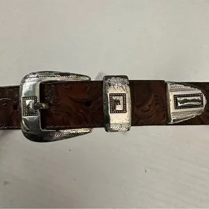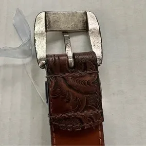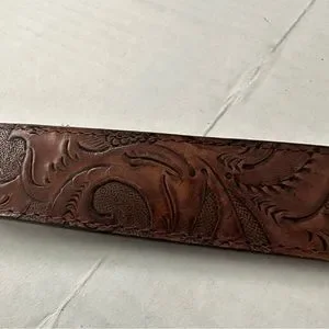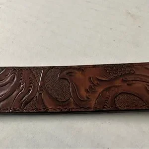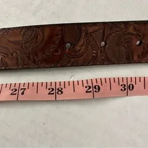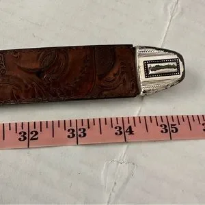 Tooled Leather Belt Brown with Silver Very Distressed Etched Hardware Never Worn