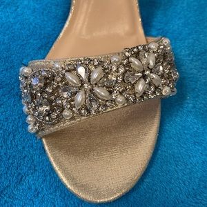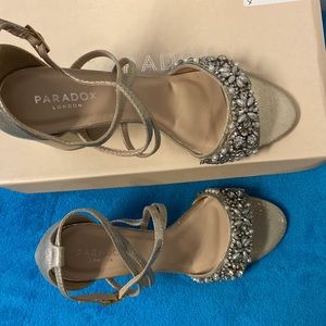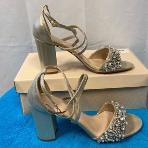 These block heels are brand new in the box. There are so many details that just make these heels beautiful. I’m not sure the pictures really show the color so much. They are a champagne color.