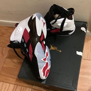 Putting a fresh spin on heritage designs, these sneakers combine the details from three classic Air Jordan shoes. The familiar elements like the bump-out collar and heel spoiler nod to the AJ6, while the line of molded lace loops and smooth toe are inspired by the AJ17. The sculpted midsole overlays of the AJ23 hook to history while forging a new look for the future. Featuring a trio of comfort, durability, and style is the iconic symbol of Jordan attitude