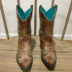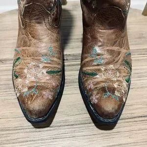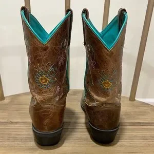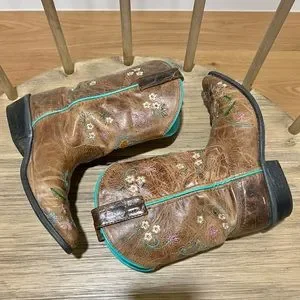 Western Genuine Leather Boots with Allover Floral Embroidery Girl's Sz. 2