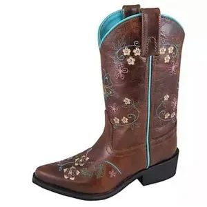 Smoky Mountain Florence Snip Toe Boots Leather & Floral Embroidery Girl's Sz. 2