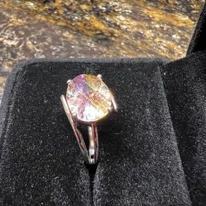 Beautiful light pink color that changes in the light sort of rainbow like! Done in 925 Sterling this would be a great addition to your ring collection. *Pre owned, comes with gift box