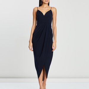 Beautiful cocktail dress with mock wrap front and concealed back zip.