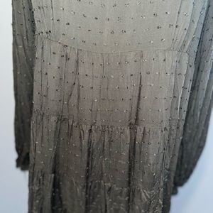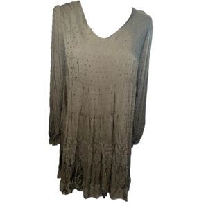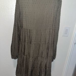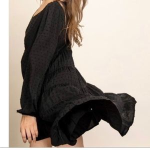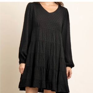 Adorable long sleeve, lined mini dress. Easy to dress up or down and is perfect for fall and winter! Swiss dot design on a babydoll tiered dress. Loose fit.
