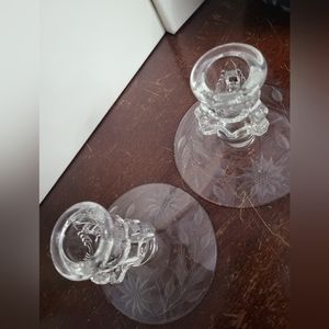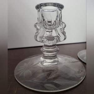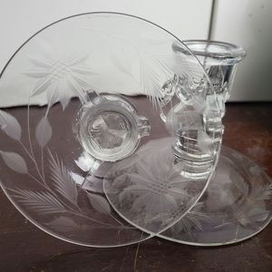 Excellent condition, WJ Huges cornflower etched Tiffin glass design on the bottom of base.. Very elegant style..
