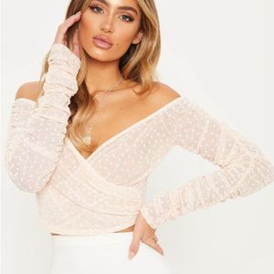 PrettyLittleThing • Nude polka dot sheet Bardot crop top