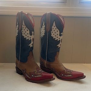 Great leather boots! Minimal signs of wear. Perfect for jeans, cutoffs, concerts or the 4th of July!