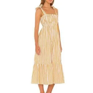 FAITHFUL THE BRAND | Gia Midi Dress | Yellow and White Stripe | Size 2 / XS