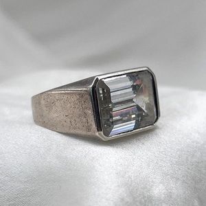 ~insanely gorgeous genuine sterling silver rectangle facetted cubic zirconia or quartz genuine stone stone with lots of prismatic rainbow action