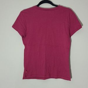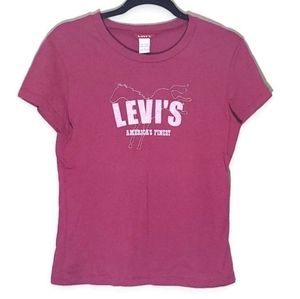 EUC Levi's T shirt. Pinkish red color. Extra stitching detail around horse. Pit to pit measures approximately 18".