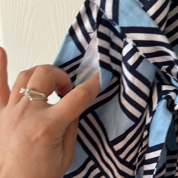 NWT Draper James lattice button down sleeveless shirt dress blue white print XL