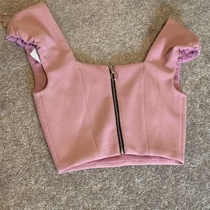 NWT J.O.A lilac crop top. Zip back. Cap sleeve. Sweetheart neckline. Light Purple- pink color. Size small