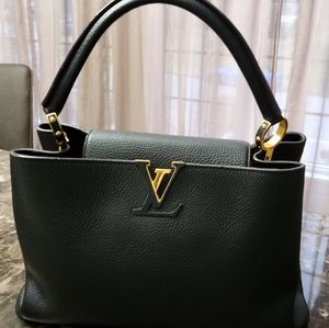 LOUIS VUITTON HANG BAG bought in 2015. lighly used. capucines MM TAURI NOIR G. have side scabs on the edges (shown on a picture). have a box and duster bag and original receipt.