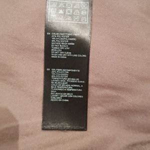 Soft, polyester Nylon blend hooded jacket. Olive green. Zip front. Adjustable drawstring waist. Two snap pockets and two smaller zip chest pockets. EUC, no flaws. Approximately 28" long in front, 32" in back.