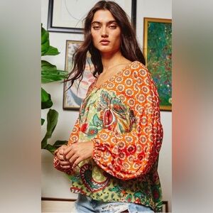 BUCKETLIST Bohemian Beautiful Colors Balloon Sleeve Top