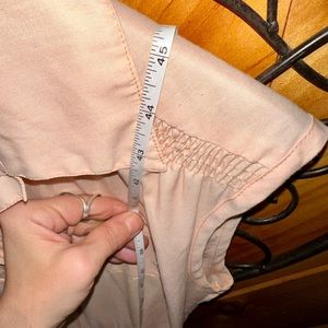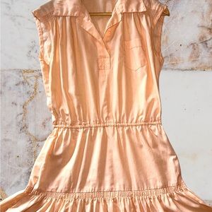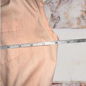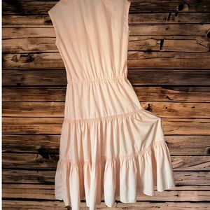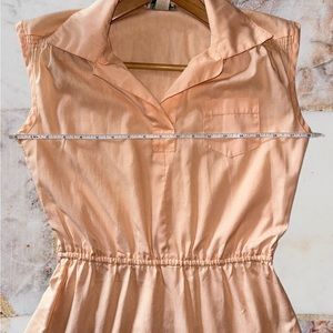 Beautiful vintage dress!! Fabric is in great condition and is cotton. No holes, tears or stains!! The color is a peachy pink. Has two belt loops on sides to add a belt if desired. Has a full flowy skirt. Has an elastic stretch waist. Elastic is in great condition.