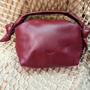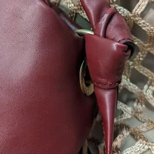 Professional leather clean only. Top zipper closure. Interior slip pocket. Adjustable side knots.