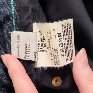 Diesel Jeans size 32, with straight legs, measures 9 1/4 inches wide at the bottom. 41.5 inches top to bottom and an inseam of 32 inches. These are in great condition. Made in Italy.