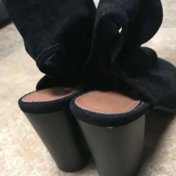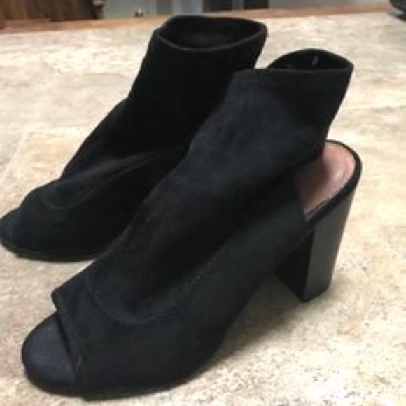 Open Toe Black Vegan Faux Suede Sandal Shoe Boot