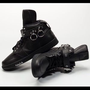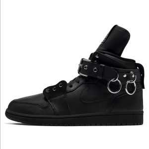 Comme Des Garçons x Nike Jordan 1 High Black Leather Sneakers