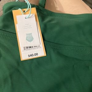 NWT Women’s, Kona Sol, Dark Green, Tie Front, Ruched, Full Coverage, One-Piece, Swim-Wear, Vacation-Wear, Adjustable Straps. Size M