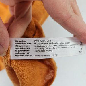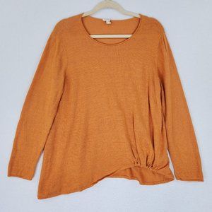 Eileen Fisher Shirt Womens Large Orange Organic Linen Long Sleeve Crew Neck