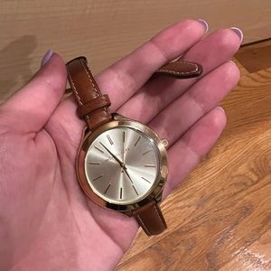 Super cute gold Michael Kors watch with a brown double wrap around leather band for a stylish twist!!