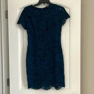 Lauren Ralph Lauren blue lace form fitting dress. Fully lined. Size 6 petite GUC. Check photos for condition