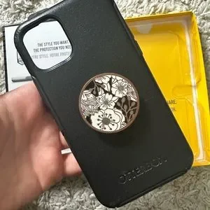 Symmetry sleek protection phone case by OtterBox in black with PopSocket. Got iPhone 11 Pro. Gently used. Comes with box
