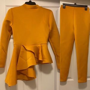 2 piece set Gold Drop Hem Top and Leggings, Size: Small ( will also fit a smaller medium), some stretch in the material, New without tags, Condition: Excellent