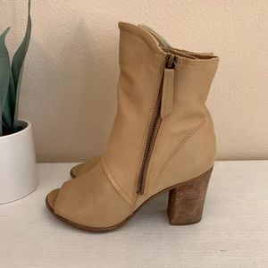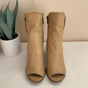 Matisse Leon Natural Leather Mid-Calf Peep Toe Booties Woman’s 7.5M