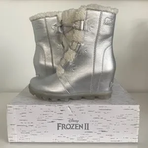 Sorel X Disney Women's Joan Of Arctic Frozen II silver Waterproof Wedge Boots. Women’s US size 6.5.