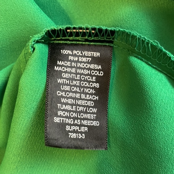 This a beautiful green sleeveless top. Stays wrinkle free and easy care. Ready for spring. The measurements are arm pit to arm pit is 19 inches and the length in the back is 28 inches as it is a high low top.