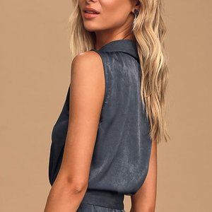 Love Like That Washed Navy Blue Satin Sleeveless Jumpsuit