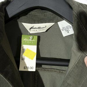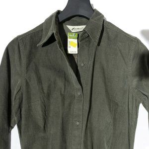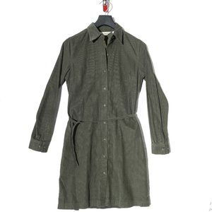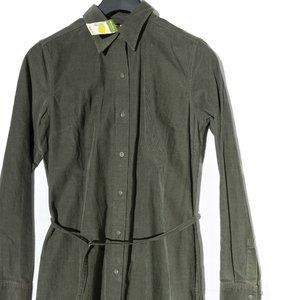NWT Eddie Bauer Green Button Up Corduroy Shirt Dress w/Belt Women's Tall M