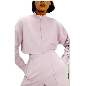 Zara Lavender Cropped Full Zipper Front Sweatshirt