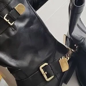 Guess Girton Black Boots with Gold Buckles 6.5 M