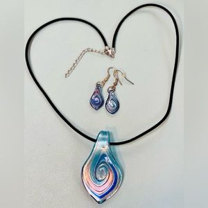 ✨Murano-Style Blown Glass Water Drop Pendant & Earrings Set