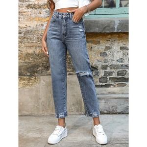 Ripped Frayed Hem Mom Jeans distressed denim straight leg high waisted light