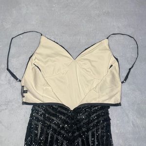 Black sequins mesh over nude