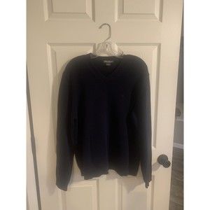 Eddie Bauer Mens L Crew Neck Long Sleeve Knit Sweater Navy 100% Cotton