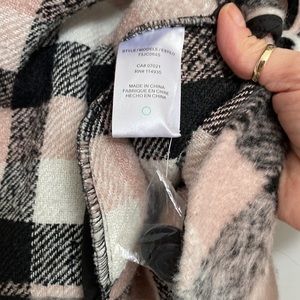 Size L An ideal year-round layering piece, this collared long sleeve plaid shacket buttons in the front, has two chest pockets and a lovely shirt-tail hem curling upward toward the side seam.