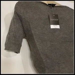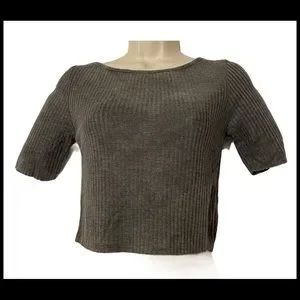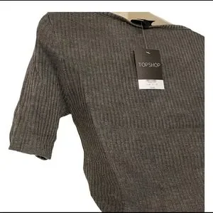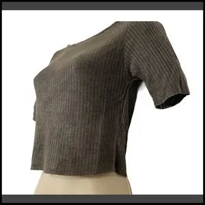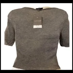 TOPSHOP NWT SLASH RIBBED CROP TEE GREY SZ 6