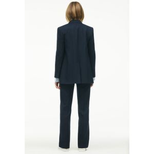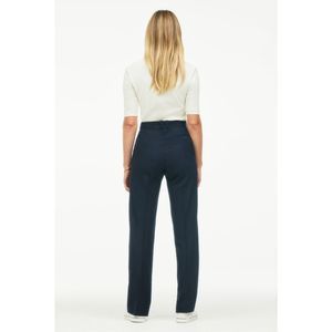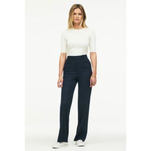 - Low waisted pants made of wool blend fabric. Side pocked and back buttoned waist pocket. Straight leg. Front zip and button closure.