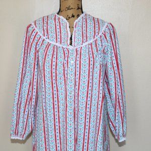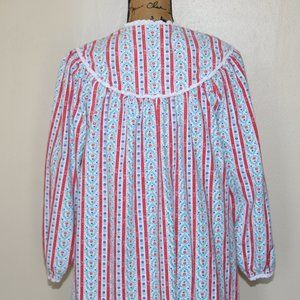 Lanz of Salzburg Red Tyrolean Hearts Flowers Flannel Nightgown Women's Small