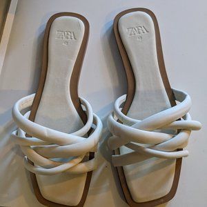 Zara Flat Strappy Sandals (White)