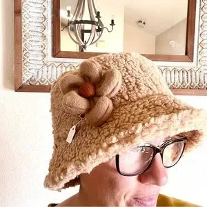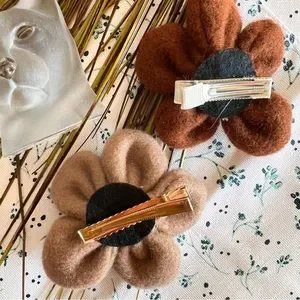 New! Set of Two Puffed Felted Cottagecore Hippie Flower Hair Barrette Clips