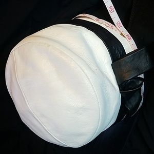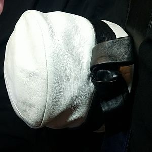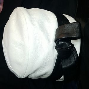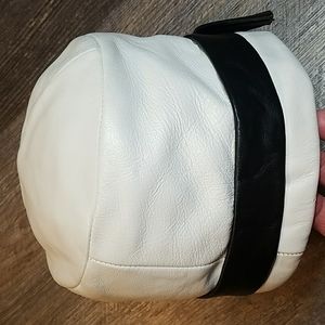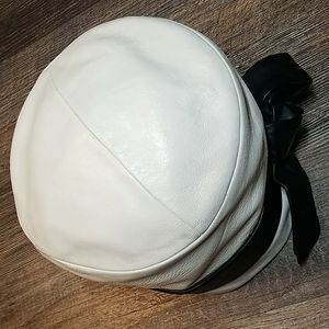 Christian Dior 'Miss Dior' 1960's Vintage Leather White and Black Mod Cloche Hat