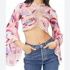 Final price ✨NWT Free People “Eyes on You” lace crop size small. Brand new, gorgeous and unique top with no flaws. Price is firm and all sales final.