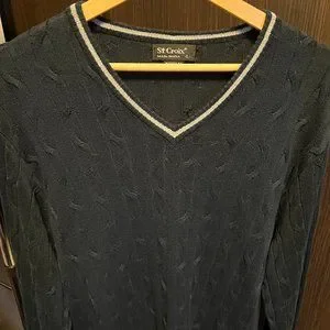 St. Croix Large cable knit V-neck sweater Slim Fit